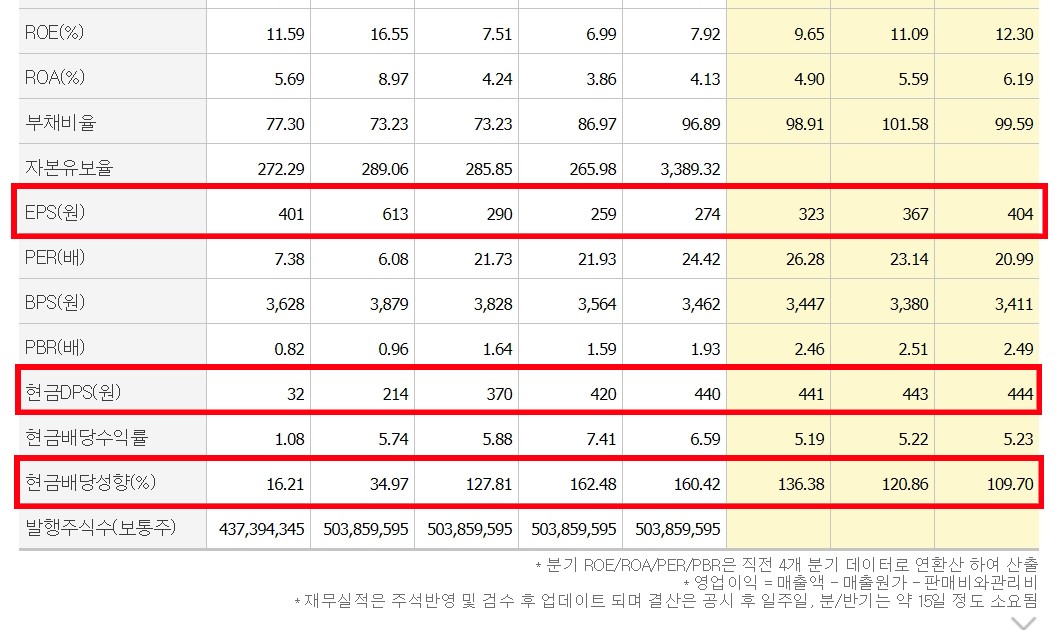하지만 현금DPS는 지난 5년간 꾸준하게 늘었고 작년과 같은 수준을 향후 3년간 지속할 것으로 보입니다.