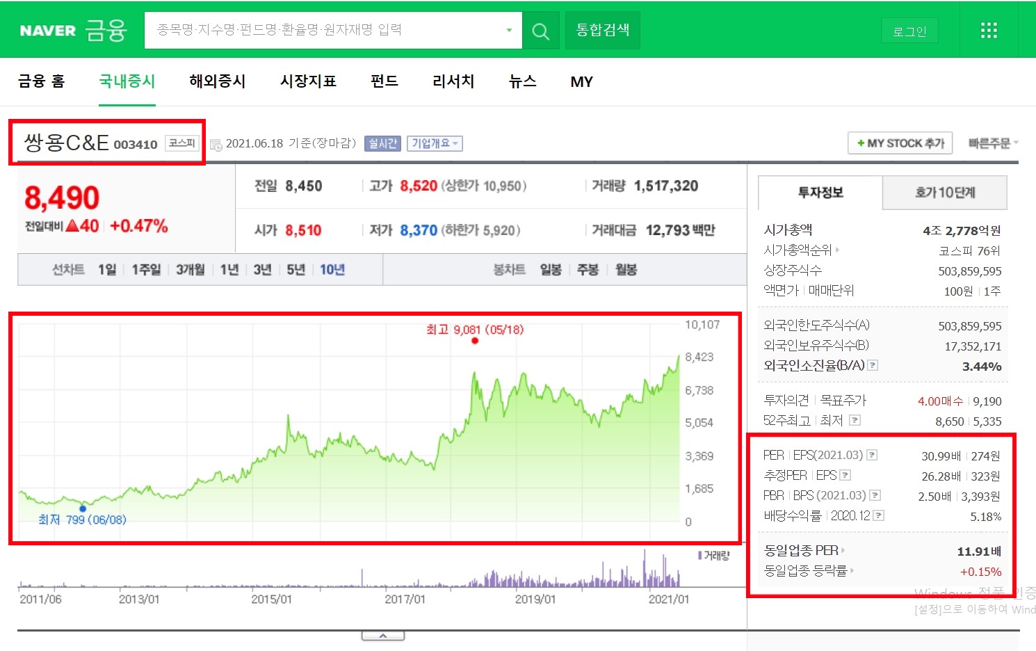 대북관련 테마와 엮였을 때라든지, 전방산업인 건설산업의 턴어라운드에 맞춰 주가 상승을 기대해 볼 수도 있을 것 같아요.