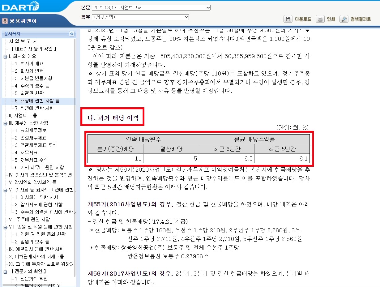 분기배당은 11회, 결산배당은 5회 연속배당했고요. 올해 1분기에도 분기배당을 실시할 예정이니, 분기배당 연속 12회 배당폭탄주 쌍용C&E^^