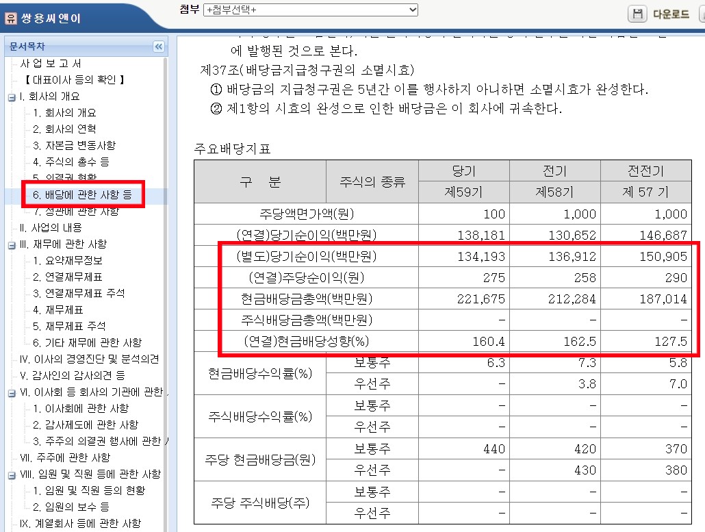 저라면 쌍용C&E처럼 고배당을 주지만 미래는 어두운 회사보다 지금은 저배당이지만 매출액 및 영업이익이 계속 상승하고 있으며 주주친화적 정책을 보이는 기업을 찾아서 투자할 것 같아요.