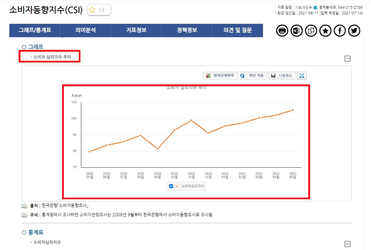 소비자동향지수(CSI)는 2020년 12월 이후 계속 증가하고 있습니다.